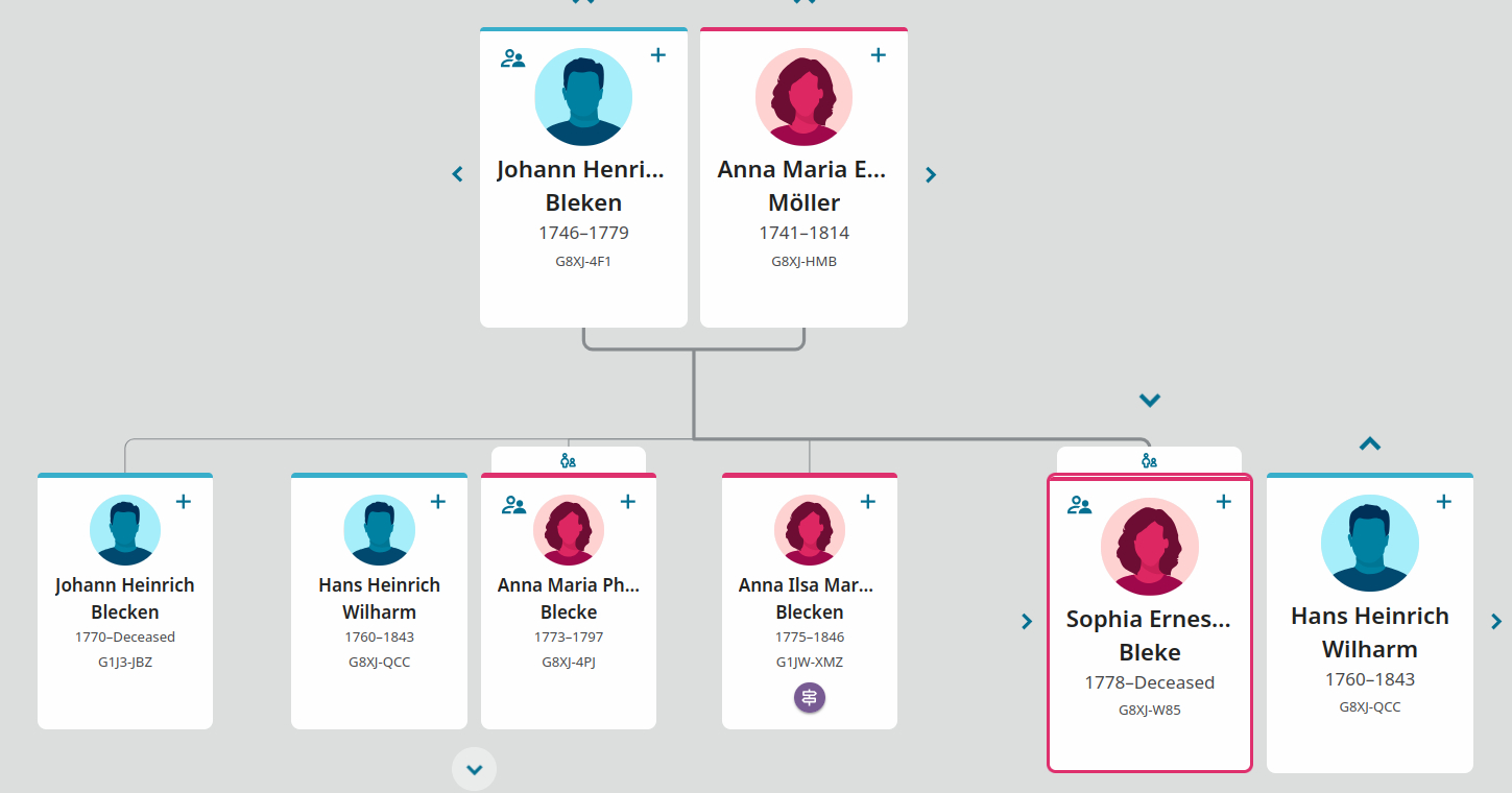 Hans Heinrich Wilharm also married a daughter of Ilse Marie from her first marraige to Johann Heinrich Bleke. On May 8, 1796, he married her first daughter, Anne Marie Philippine Blecke of no. 11 Evesen, who was the half-sister of Philippine Eleonore.