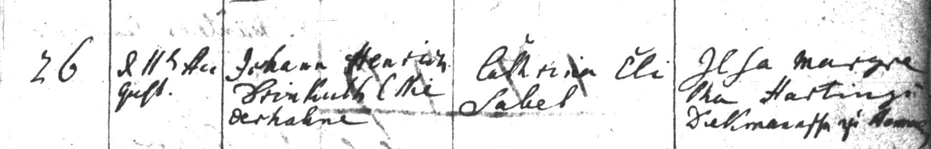 The birth of Catharine Elisabeth Drinkuht is on image 62, pages 192-193 of the Kleinenbremen parish volume "Trauungen 1763-1807, Taufen 1763-1807, Beerdigungen 1763-1807, Konfirmationen 1763-1803 Band 2".