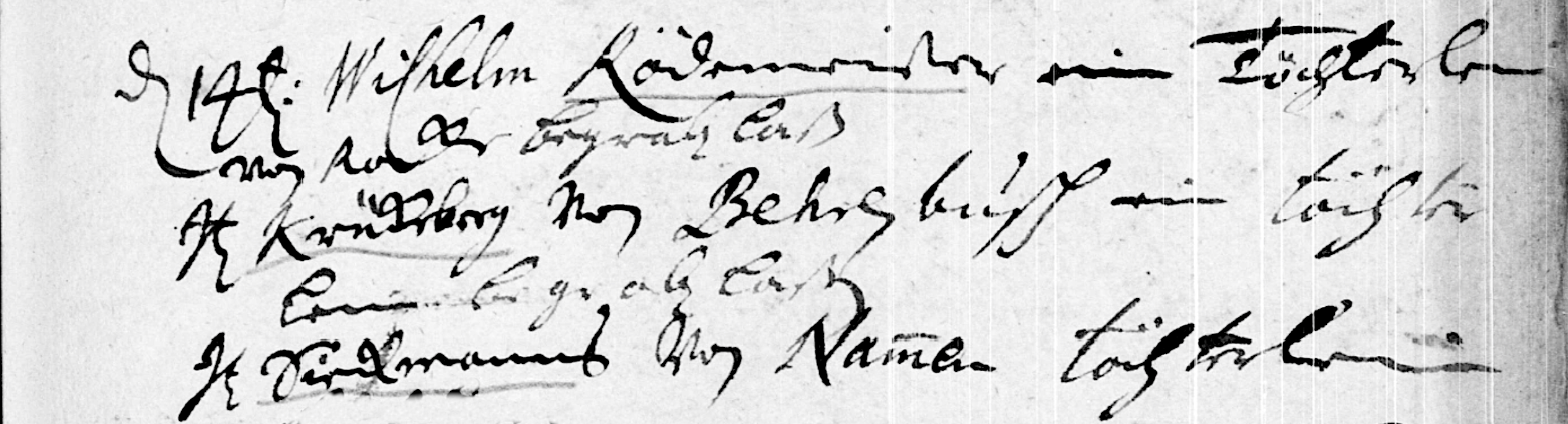d 14t: Wilhelm Rödemeister ein Töchterlein von Rocke begrab[en] lasß [H?] Krückeberg von Behrenbusch ein Töchter- lein begrab lasß [H?] Sieckmanns von Namen Töchterlein |