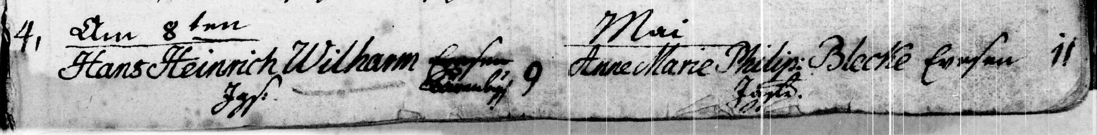 The marriage of Hans Heinrich Wilharm and Anne Marie Philippine Blecke is the 4th marriage of 1796: