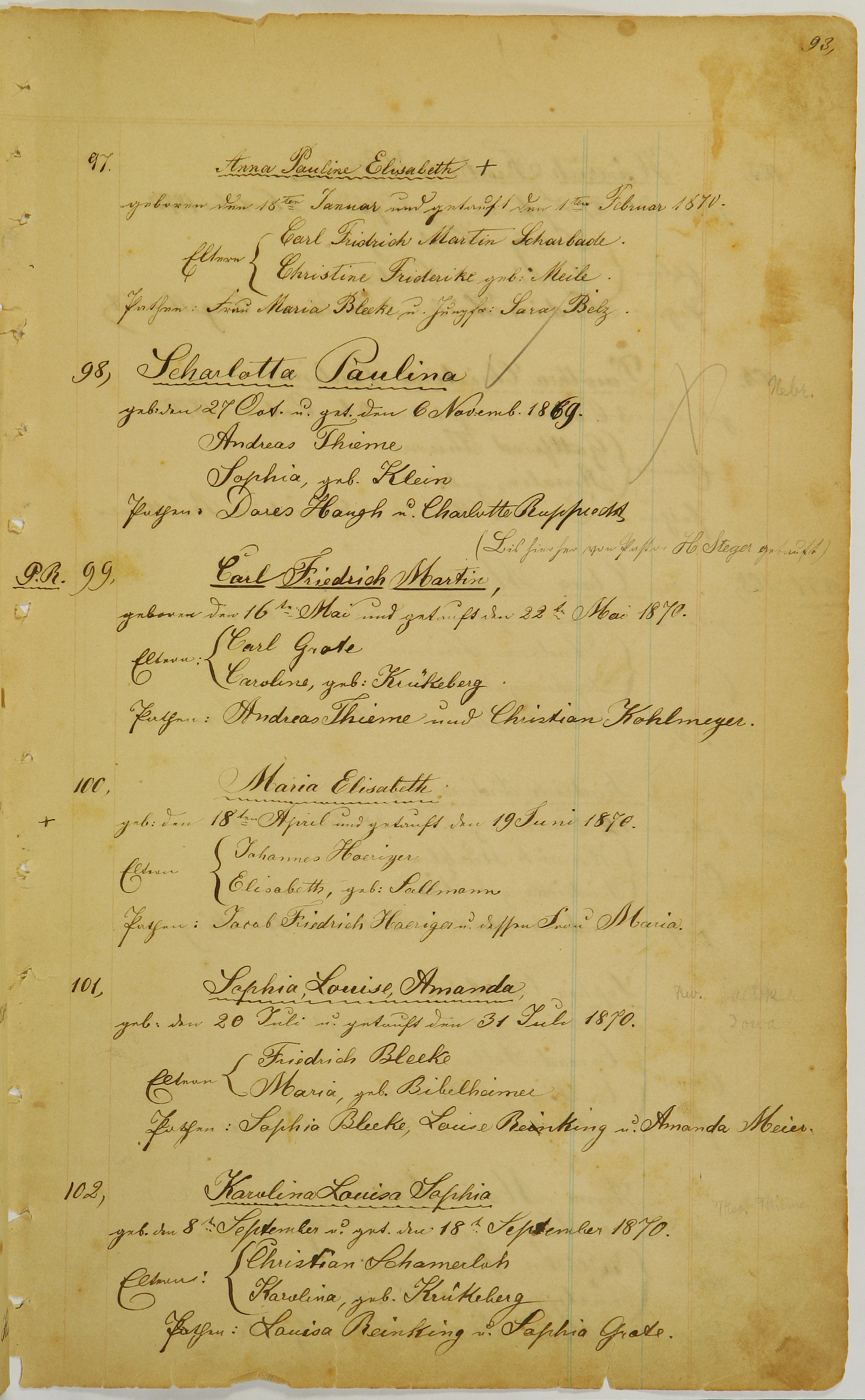 Godparents: Andreas Thieme and Christian Kohlmeyer.