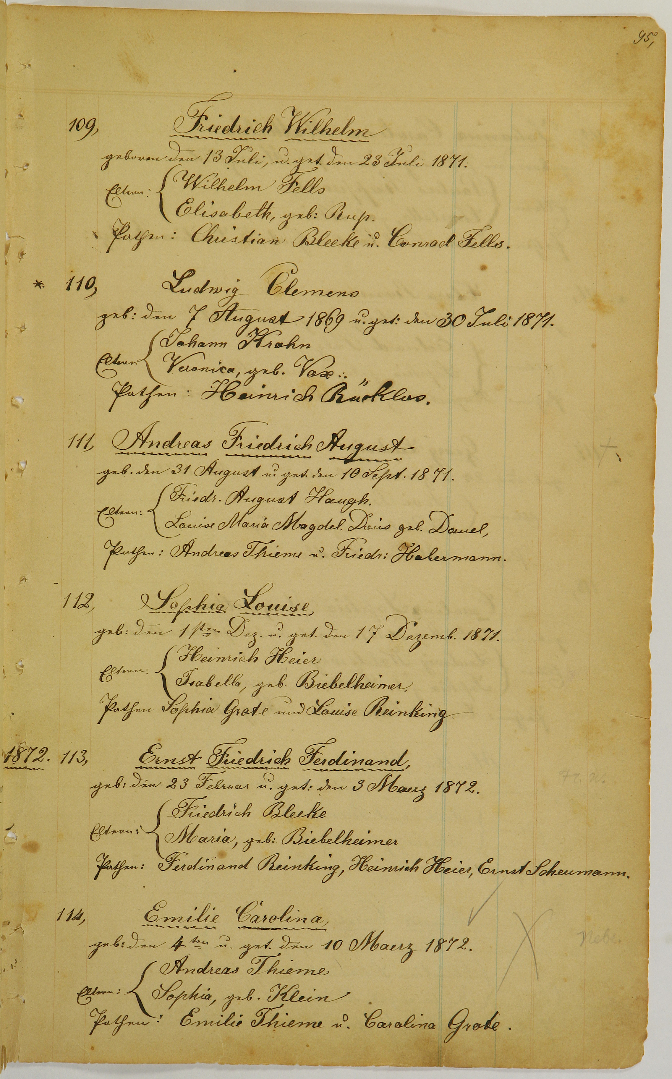 Godparents: Ferdinand Reinking, Heinrich Heier, Ernst Scheumann.
