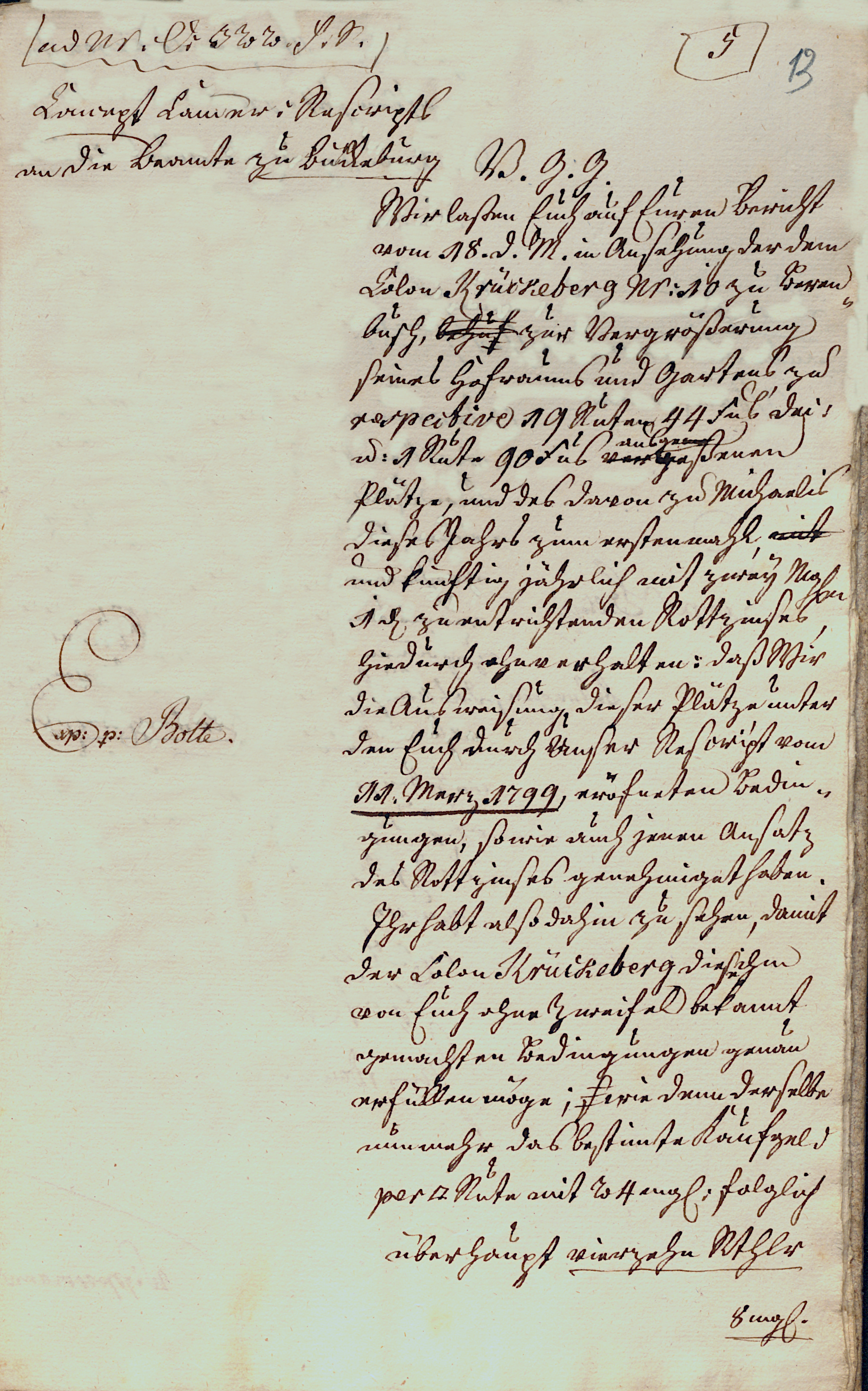 official reply (Rescript) of 11 March 1799, as well as the proposed amount