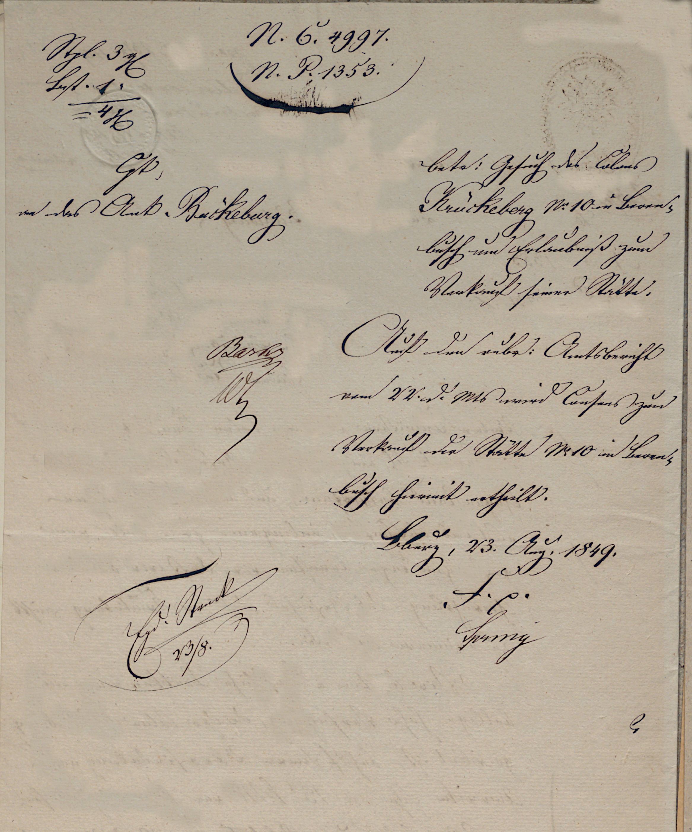 Petition of Colon Krückeberg for Permission to Sell his Farmstead (23 Aug. 1849)