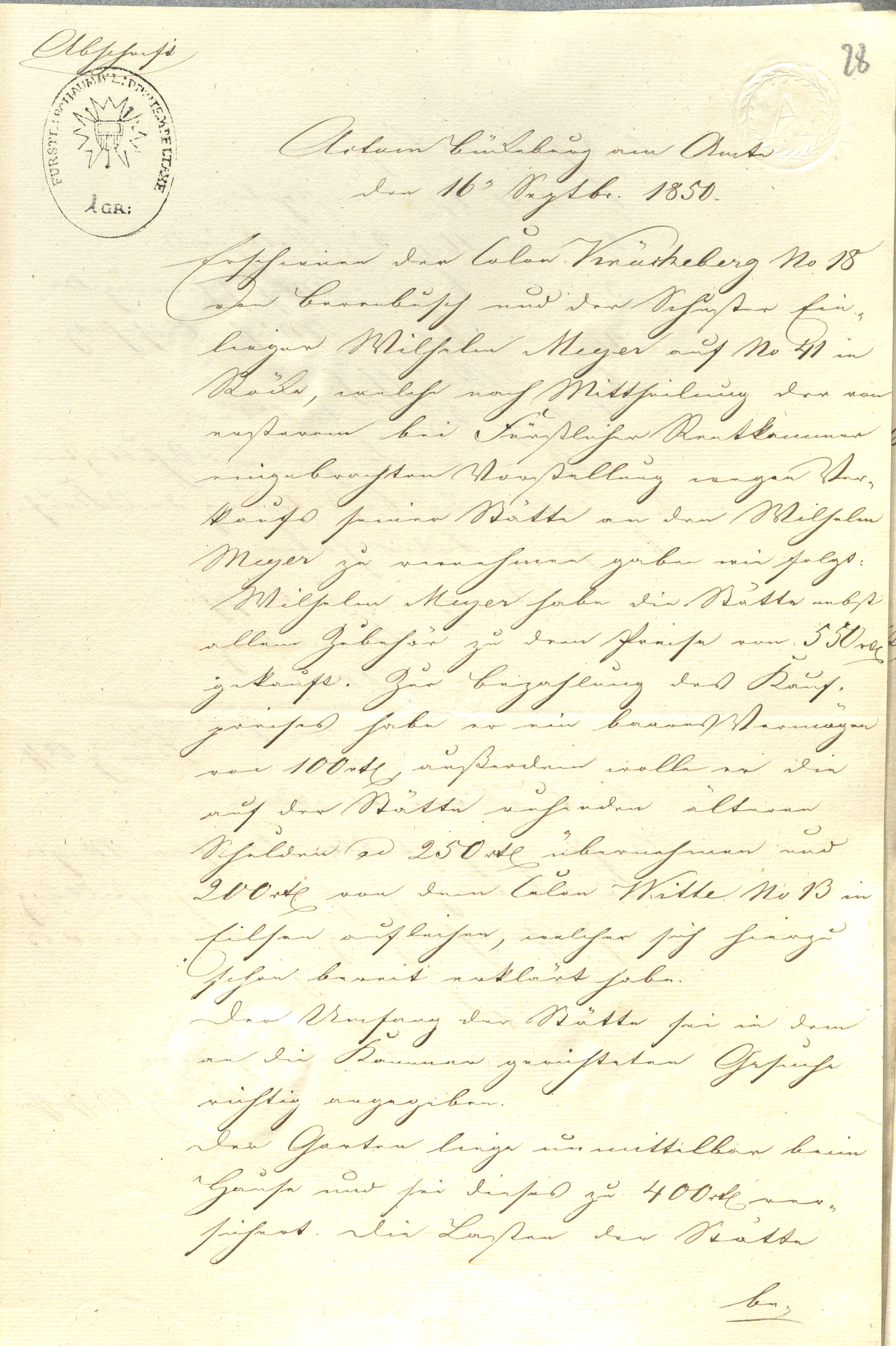 for the price of 550 Reichstaler. For payment of the purchase price he has