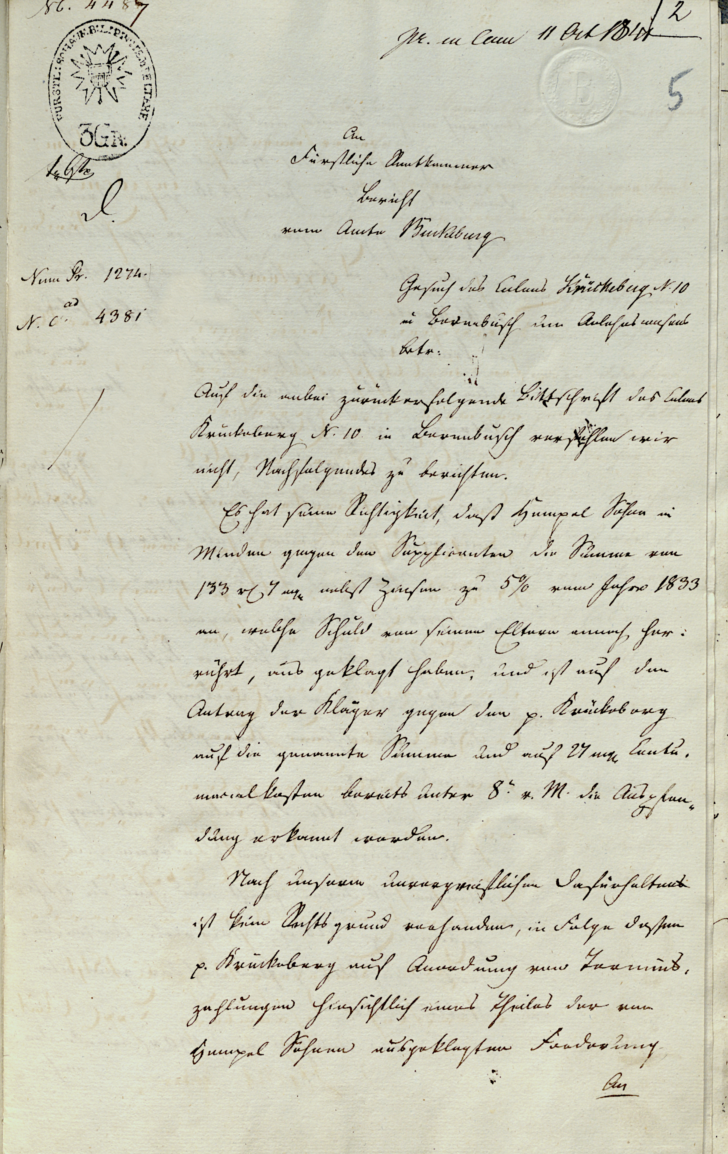Docket Item 2: Report of the Office of Bückeburg (7 Oct 1841)