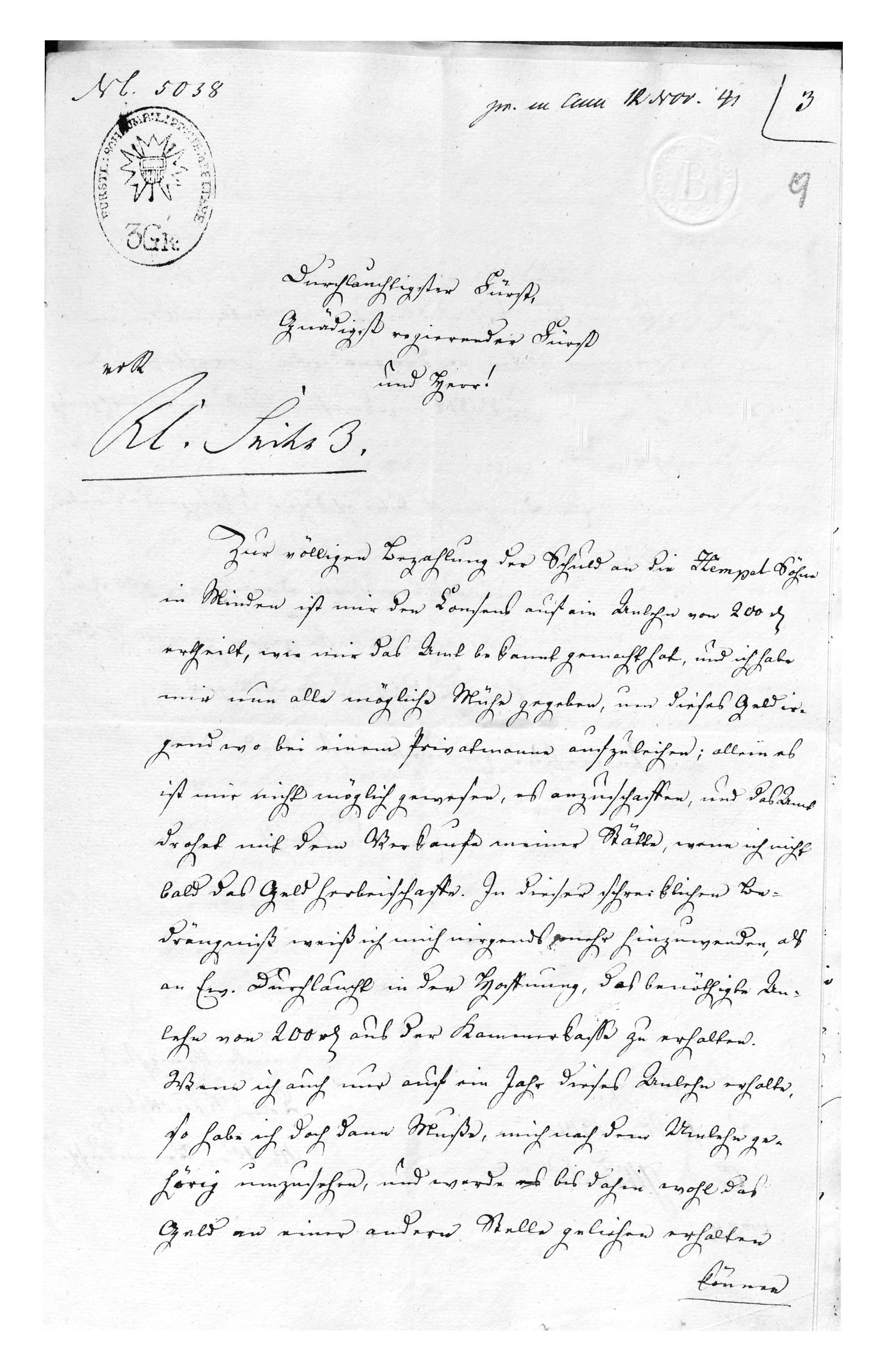an Ew. Durchlaucht in der Hoffnung, das benöthigte An-