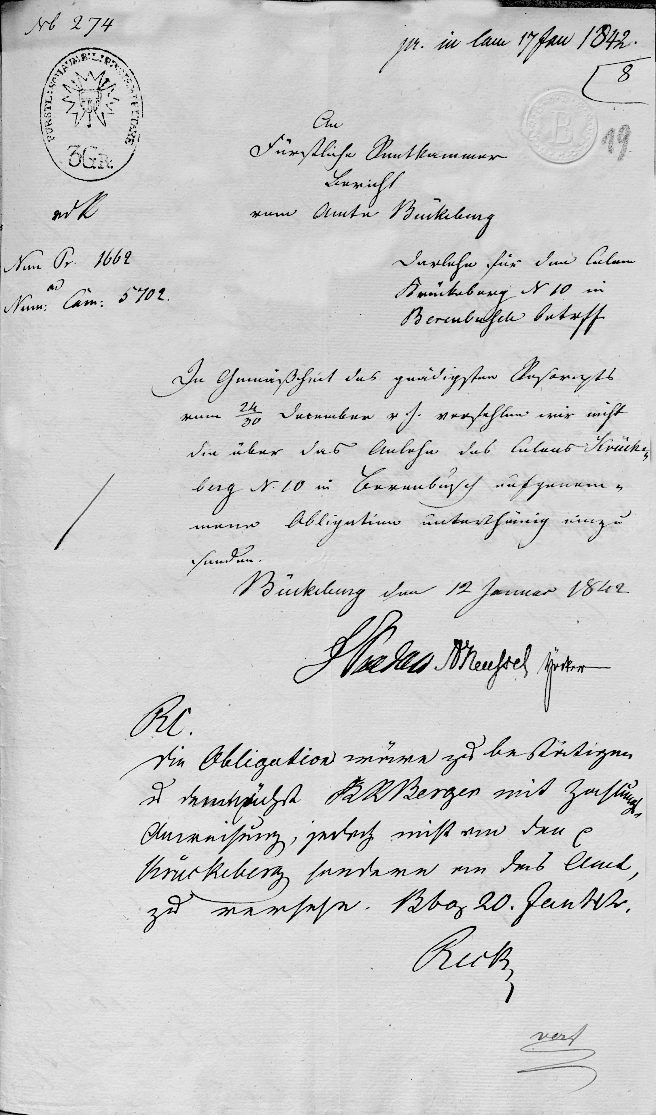 Docket Item 8: Report from the Office Bückeburg (12 Jan 1842)